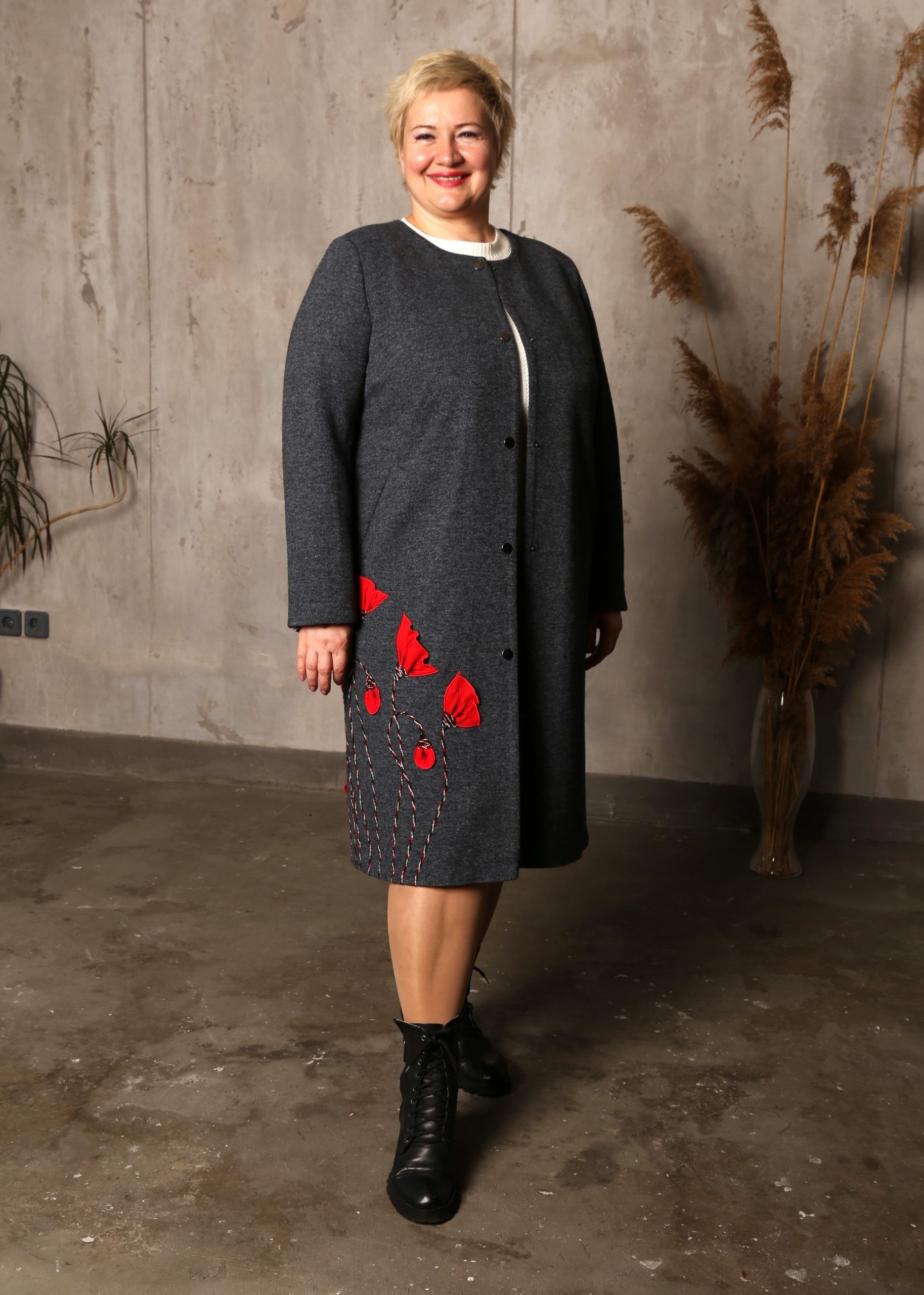 Пальто с вышивкой ромбы