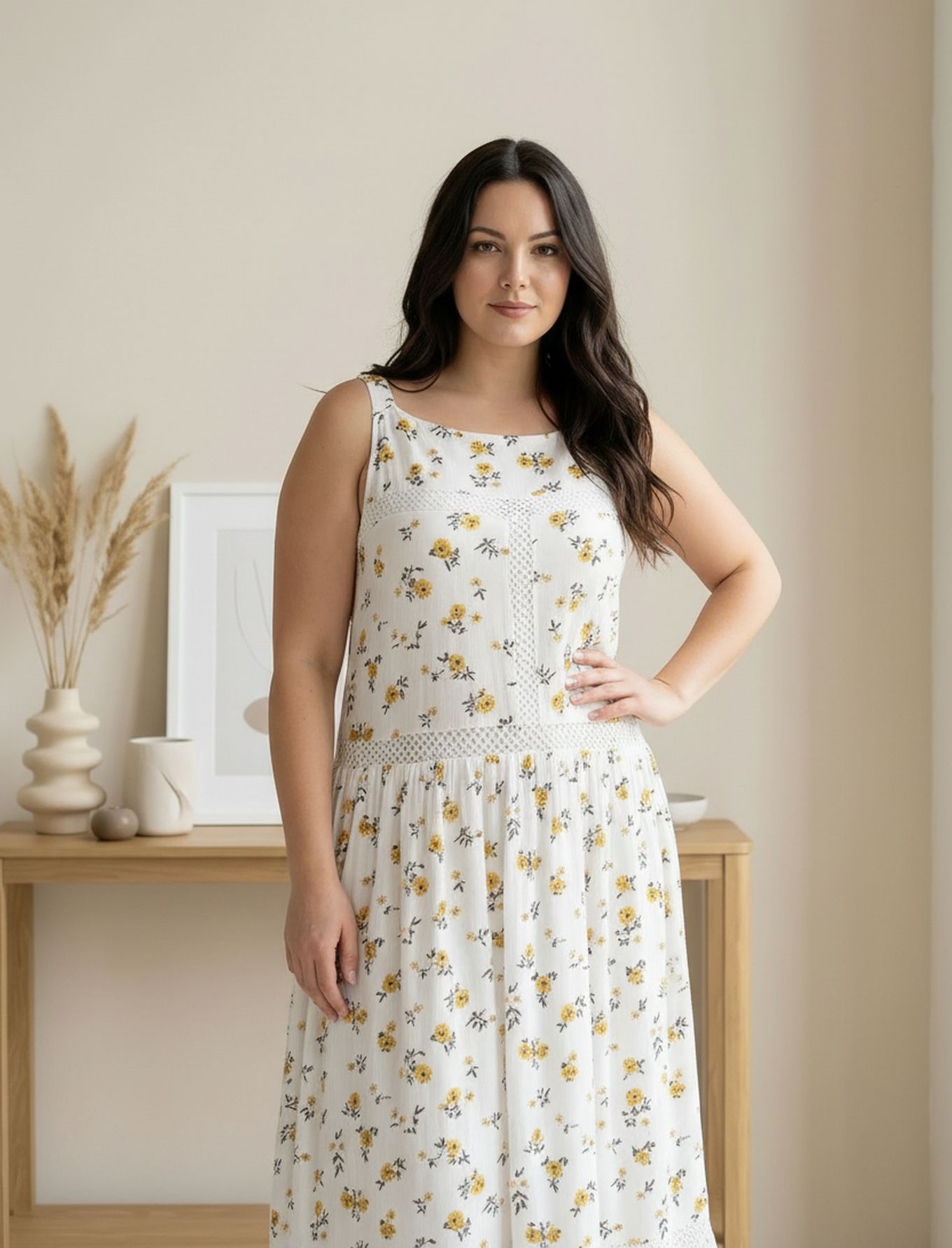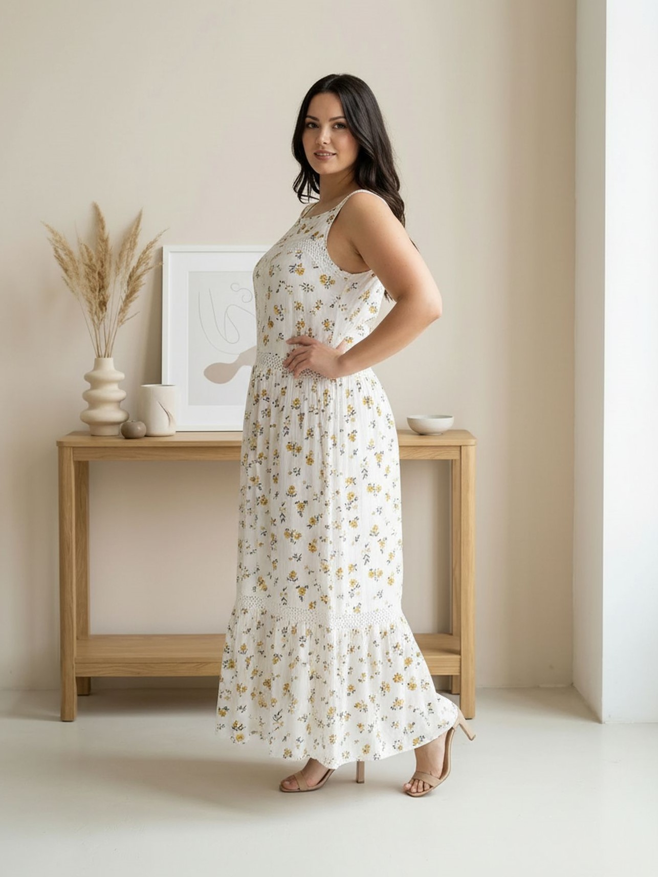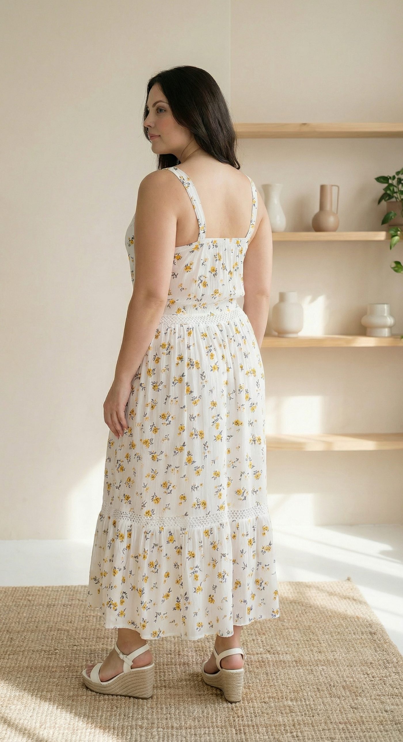 Ніжний квітковий принт додає образу романтичності, а довжина міді робить сарафан універсальним варіантом як для щоденних образів, так і для відпочинку, прогулянок чи літніх подій.