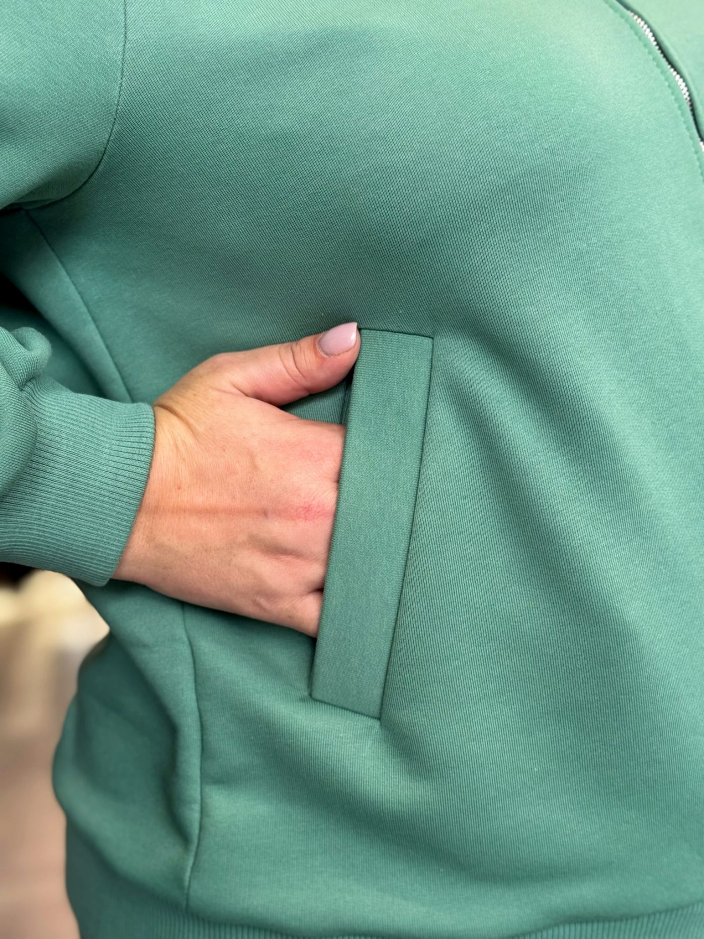 Глибокий природний зелений колір виглядає благородно та легко комбінується з різними варіантами взуття — від спортивного до casual стилю. Костюм чудово підходить для прогулянок, подорожей, відпочинку, активного способу життя або стильних міських образів.
