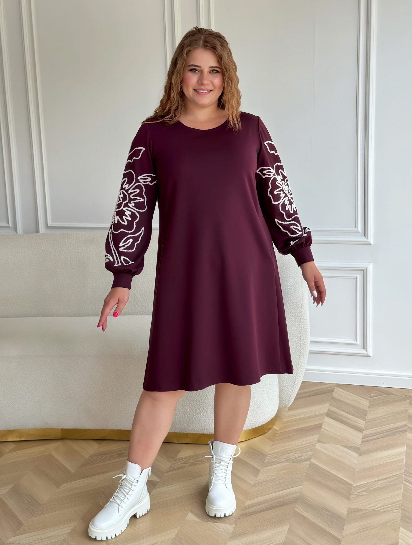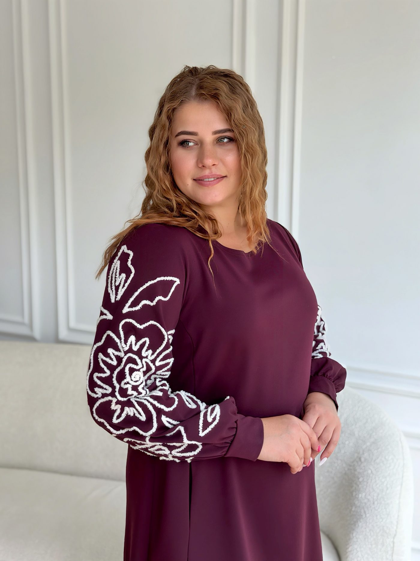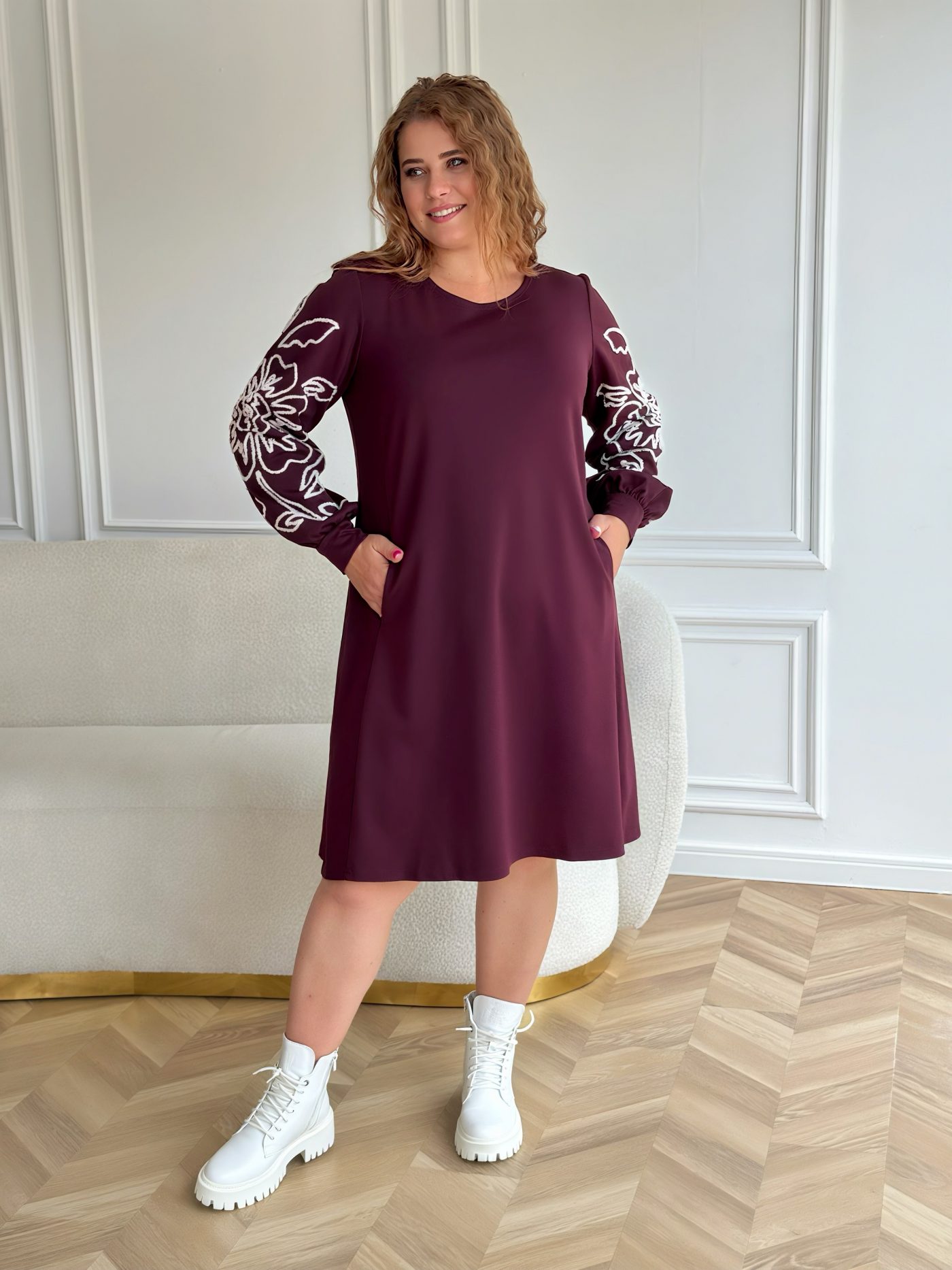 Бордовое платье-трапеция с вышивкой — это сочетание уюта, стиля и элегантности для женщин, которые хотят выглядеть безупречно в любое время года.